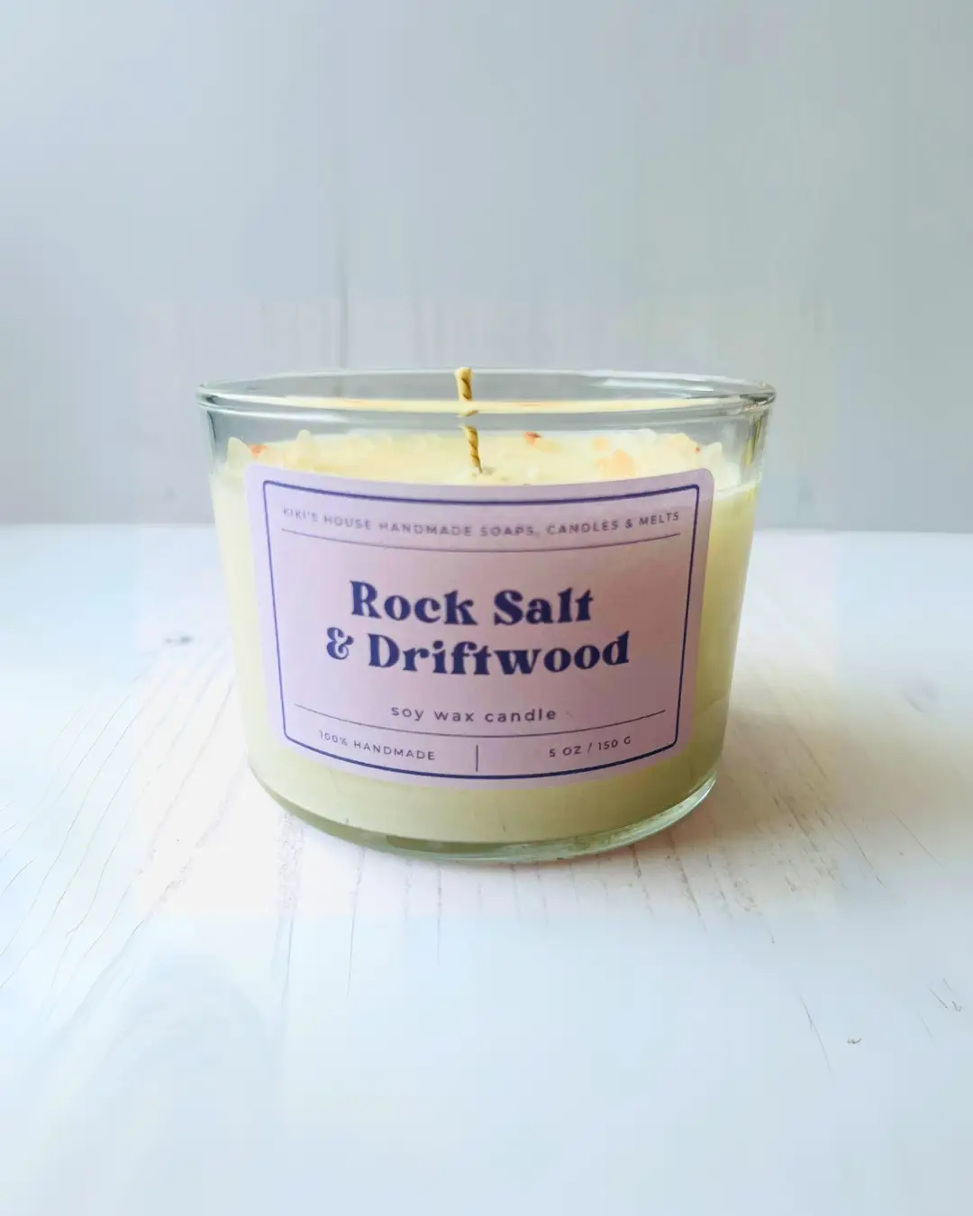 A refreshing coastal escape. Rock Salt & Driftwood captures the essence of a cool sea breeze and salty air—bringing the serenity of the shoreline into your home. Handmade with Love.